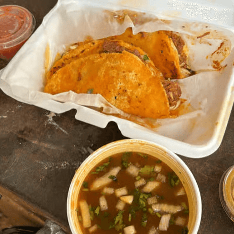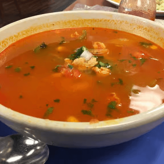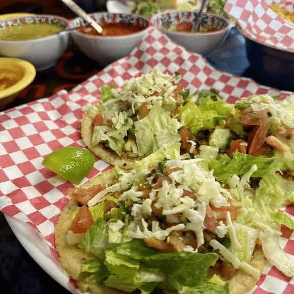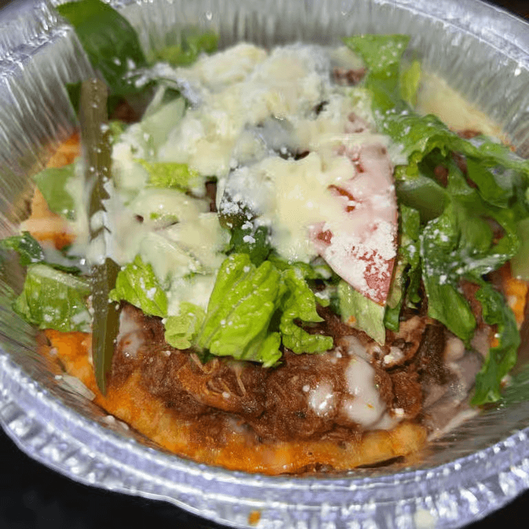 Filled with your choice of meat, steak, or two chicken legs, with fresh cheese, onions, oregano, cabbage or lettuce, avocado, tomatoes, sour cream, and jalapeño