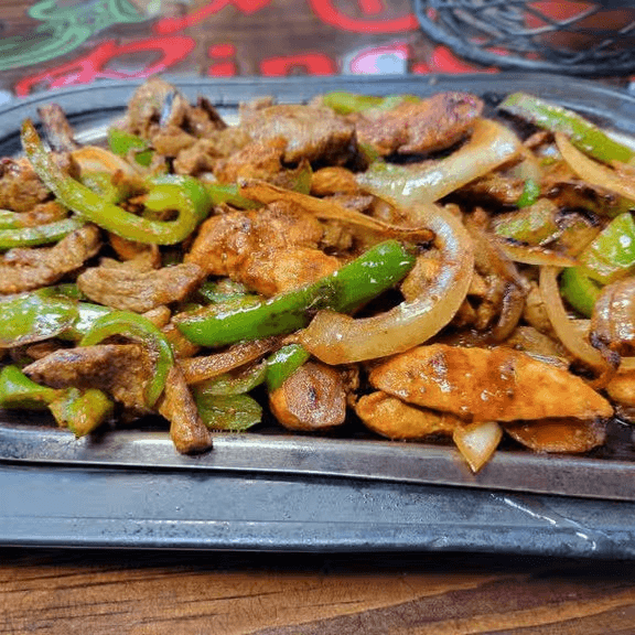 Chicken, beef, chorizo, and shrimp grilled with onions, bell peppers, and tomatoes. Fajitas include rice, beans, salad, and tortillas